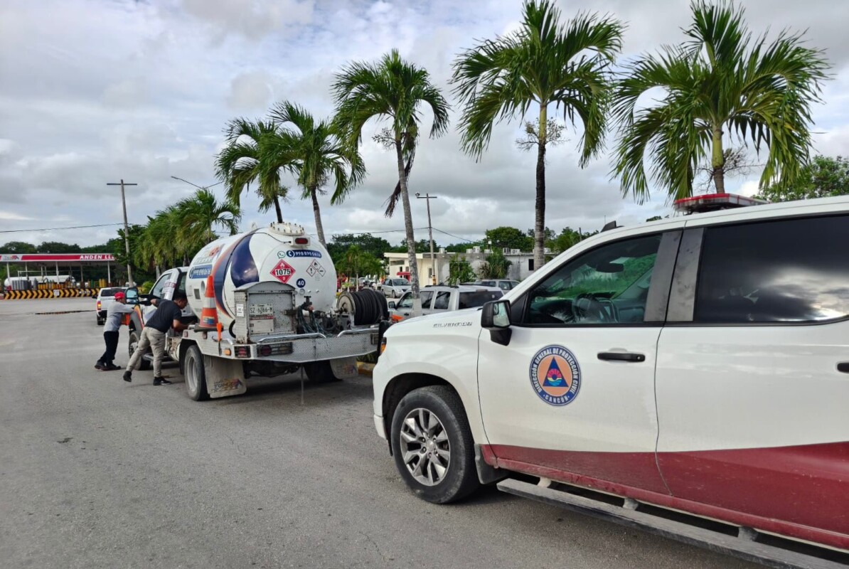 El incidente ocurrió en el cruce de las avenidas Tules con Kabah, donde una pipa de la empresa Tomza que transportaba aproximadamente 12 mil litros de gas LP presentó una fuga mientras se desplazaba por la vía pública.