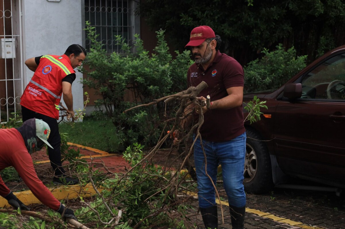 Al recorrer diversos puntos de la ciudad, junto con los directores de Servicios Públicos, Antonio de la Torre Chambe, y de Parques y Áreas Jardinadas, Sergio Torres Chávez, primeramente constató la labor y acciones preventivas que mantiene el personal de dicha dependencia en las calles de Cancún, como la poda de árboles caídos en diferentes puntos como la avenida Kohunlich casi con avenida La Luna.