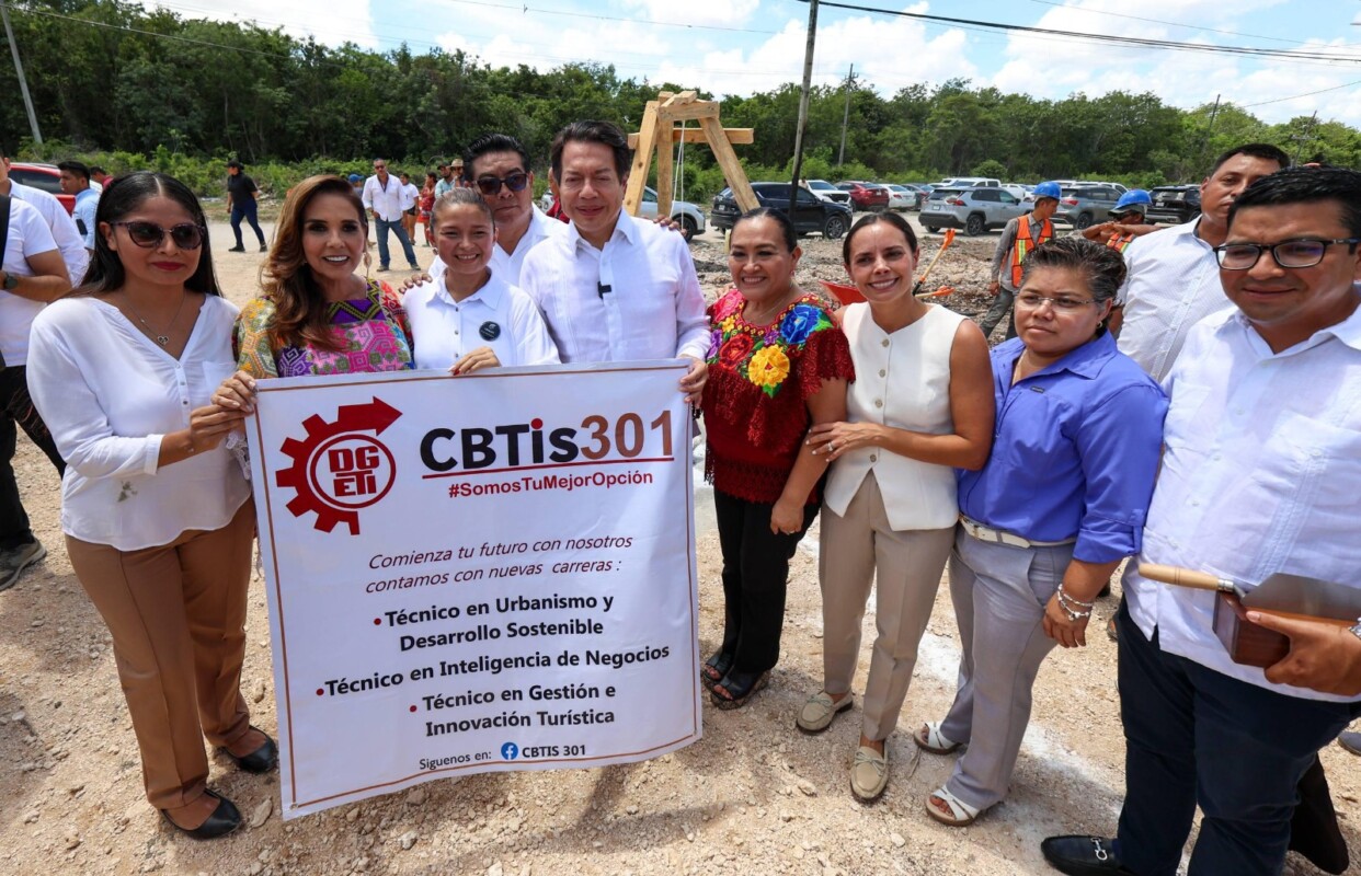 La Presidenta Municipal, Ana Paty Peralta, participó en la colocación de la primera piedra para el inicio de la construcción del Centro de Bachillerato Tecnológico Industrial y de Servicios de nueva creación (C.B.T.I.S. No. 301), en la colonia Cuna Maya, que tendrá una capacidad de hasta 900 alumnos en dos turnos.
