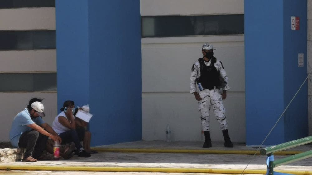 Guardia Nacional resguarda hospitales COVID.- Aunque desde el pasado martes la Guardia Nacional inició con el despliegue de su personal en 184 nosocomios reconvertidos del IMSS en todo el País, 3 de ellos ubicados en Q. Roo, la vigilancia también se mantiene en hospitales pertenecientes a la Secretaría de Salud, tal es el caso del Hospital General de Cancún, todos ellos con atención exclusiva de COVID 19.