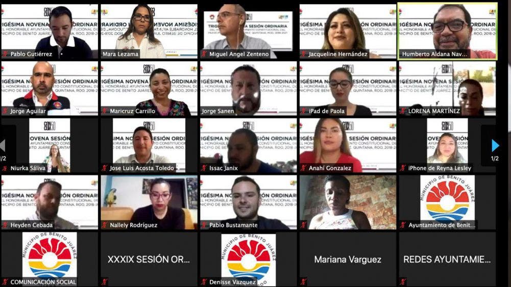 Debido a la contingencia sanitaria que se vive a nivel mundial y que mantiene a México en Fase 3, este jueves se llevó a cabo la Trigésima Novena Sesión Ordinaria del Ayuntamiento de Benito Juárez a través de una videoconferencia con la presencia de la Presidente Municipal, el Secretario, el Síndico y los 13 regidores que conforman el Cabildo.