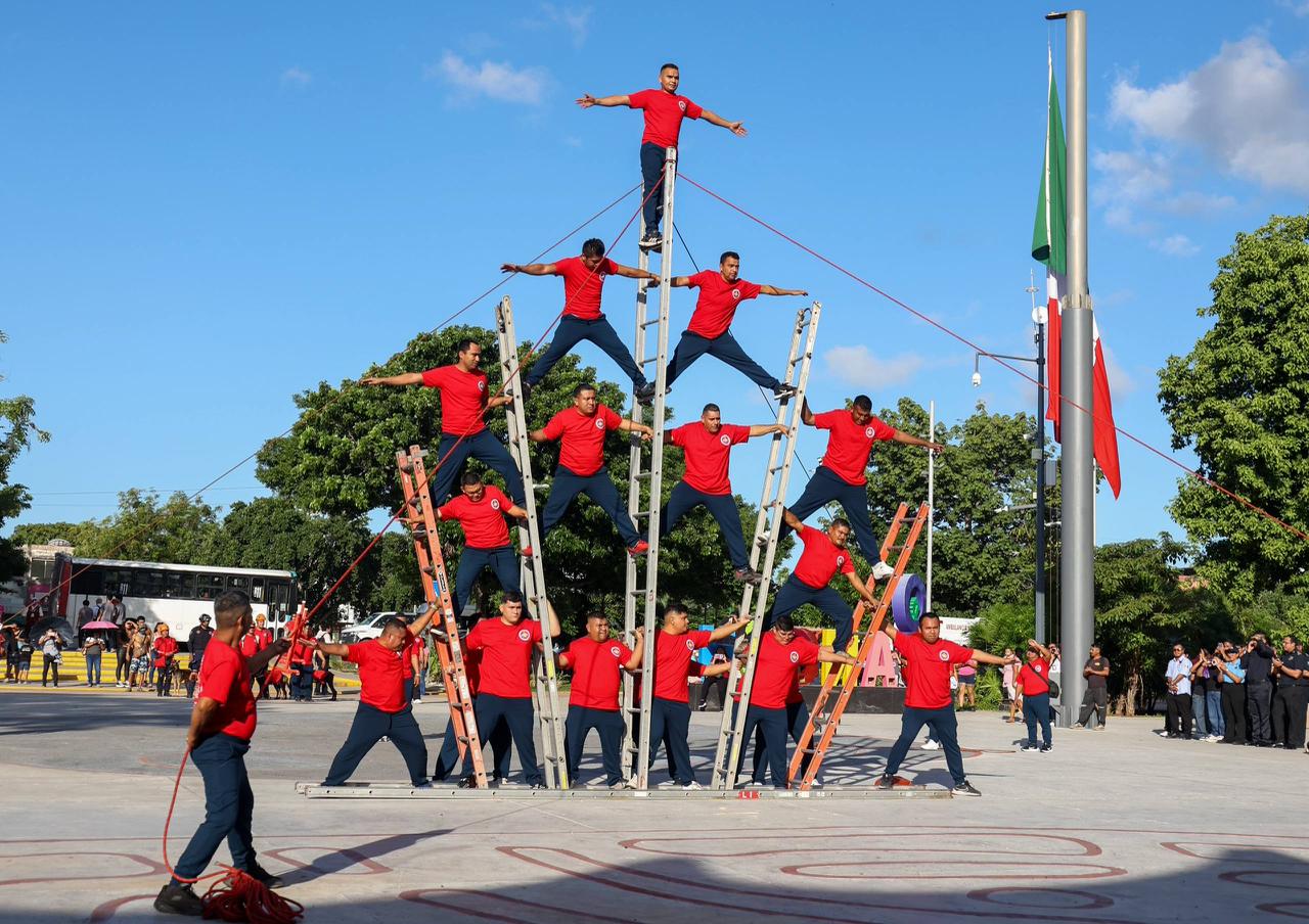 Como parte de la conmemoración, la Presidenta Municipal y las familias asistentes disfrutaron de las exhibiciones deportivas de clubes como Pioneras FC, así como destrezas de varias instituciones, tales como el Escuadrón Deportivo Militarizado de Benito Juárez, el Heroico Cuerpo de Bomberos, Secretaría de Seguridad Ciudadana y Tránsito, así como la dirección de Tránsito Municipal, quienes ejecutaron diferentes suertes como dominadas del balón, pirámides humanas, saltos en aros de fuego y evoluciones a bordo de las motopatrullas, entre otras que fueron aplaudidas por los presentes.