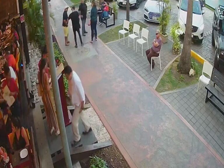 En la grabación se puede apreciar cuando un sujeto que viste de color negro se acerca a uno de los individuos que se encuentran en la banqueta y lo despoja su reloj.