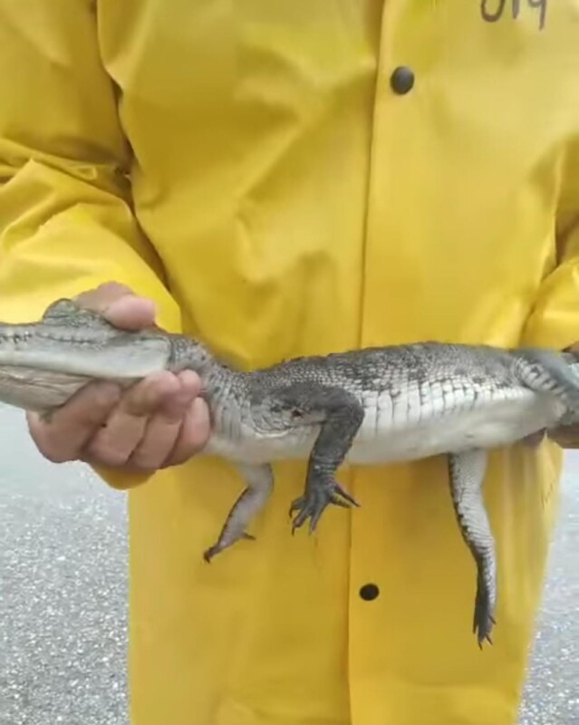 Ante ello, la unidad 972 del Cuerpo de Bomberos bajo el mando del supervisor Ismael Rodríguez, se movilizó de inmediato al lugar de los hechos. Al llegar a la dirección indicada, el equipo encontró al cocodrilo de aproximadamente un metro de largo en un charco de agua frente a un domicilio.