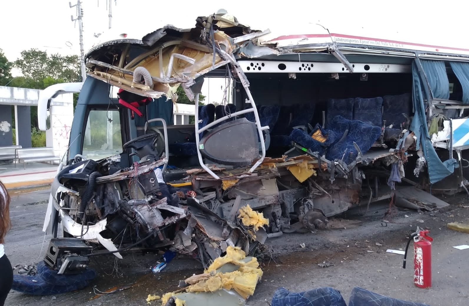 El conductor de un autobús Irizar con placas 47-RB-3P del servicio público federal y número económico, 144 de la empresa del Valle; perdió el control y se estrelló contra la base de concreto del paso peatonal, quedando lesionado el chofer y el camión destrozado, afortunadamente nadie más viajaba en el camión.