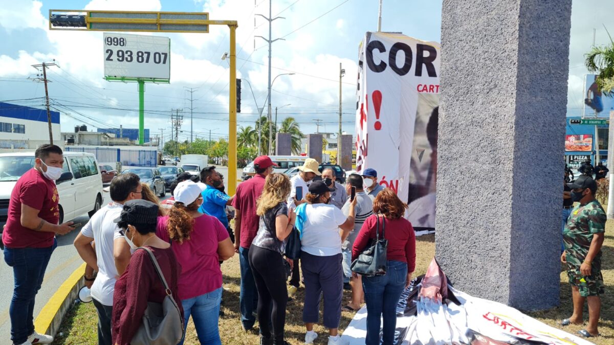 Por su parte, elementos de seguridad también impidieron que la manta fuera colocada bajo el argumento de que con ella se obstruía la visibilidad de los automovilistas en dicho cruce por lo que los “marybelistas” protestaron aduciendo que estaban violando su derecho a la libre expresión.