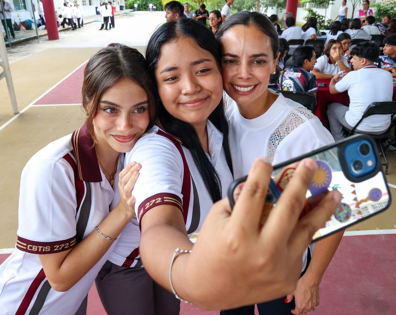 “Quiero pedirles que sigan siendo jóvenes rebeldes, jóvenes que rompan las reglas, pero que las reglas sean las que los lleven a hacer el bien; ser rebeldes es decidir no drogarse, no humillar, no violentar, porque las actitudes autodestructivas no los va a llevar a nada bueno”, expresó durante el foro organizado por la Secretaría Municipal de Seguridad Ciudadana y Tránsito, a través de la Dirección de Prevención del Delito con la Participación Ciudadana, que se realizó en el domo del Centro de Bachillerato Tecnológico Industrial y de Servicios (CBTIS) 272 “Sor Juana Inés de la Cruz.
