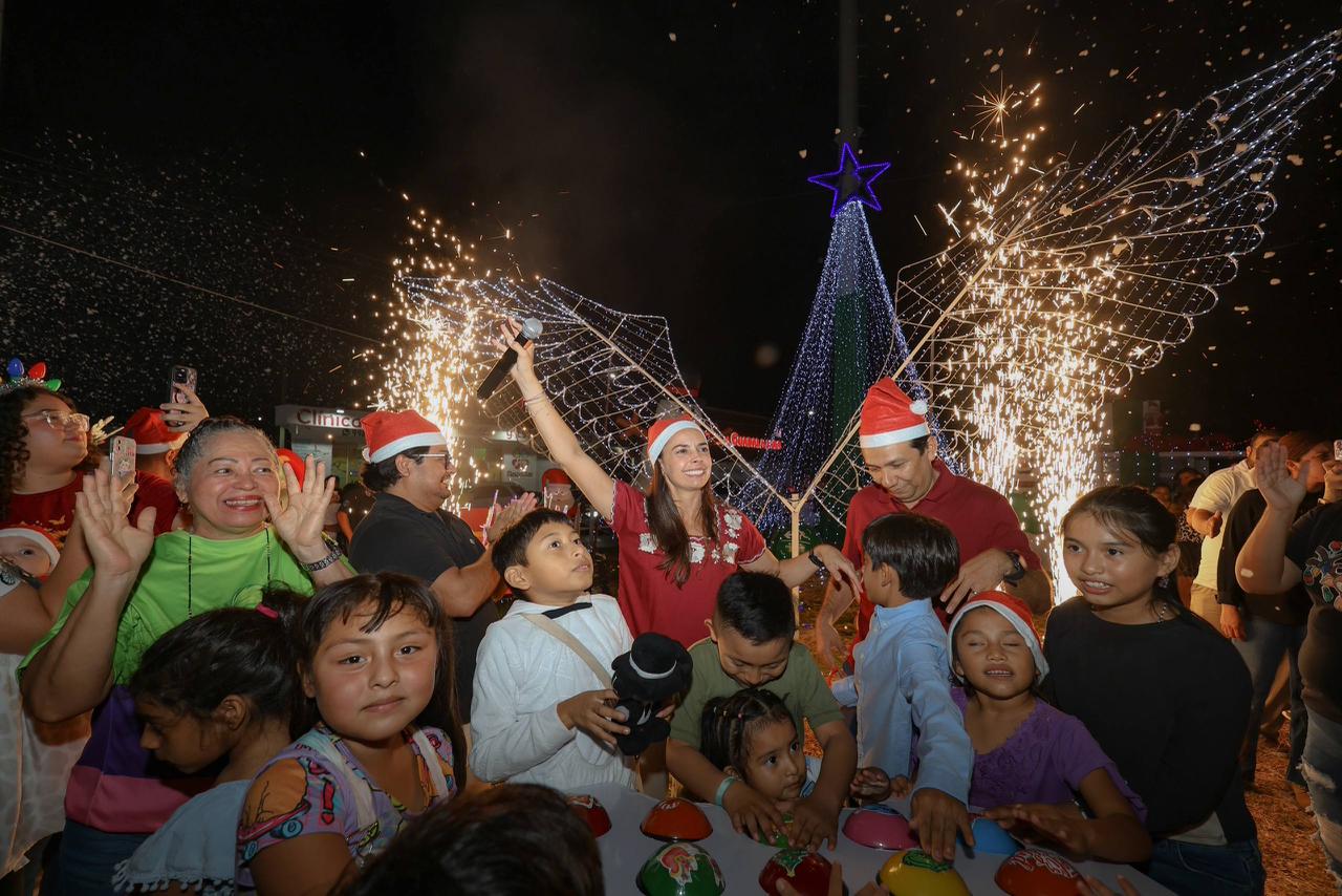 Cancún, Q. R., a 18 de diciembre de 2025.- Con un emotivo conteo regresivo, la presidenta municipal, Ana Paty Peralta, iluminó la Villa Navideña de la Supermanzana 259, un espacio lleno de luz, color y magia, que por tercer año consecutivo fue preparado con dedicación y cariño por el equipo de la Dirección de Protección Civil.