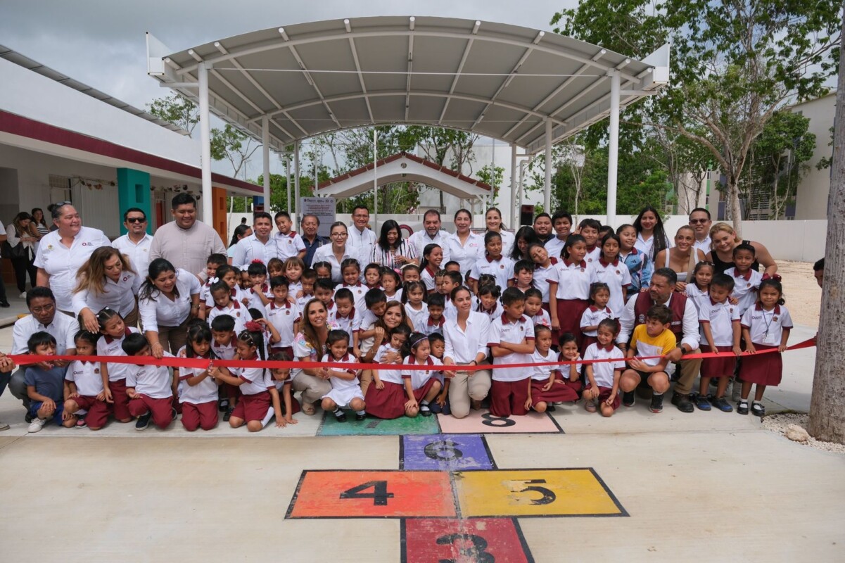 Cancún.- La gobernadora Mara Lezama Espinosa inauguró un Arco Techo en la escuela preescolar “Hermenegildo Galeana” del fraccionamiento Paraíso Maya, en beneficio de 87 niñas y niños, así como a sus maestros y personal de apoyo educativo.
