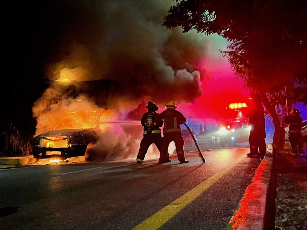 Asimismo, casi de forma simultánea, informaron sobre un cuarto vehículo envuelto en llamas en el estacionamiento de la tienda departamental Soriana, ubicada en la supermanzana 512, lo que generó preocupación entre vecinos y clientes que se encontraban en la zona.