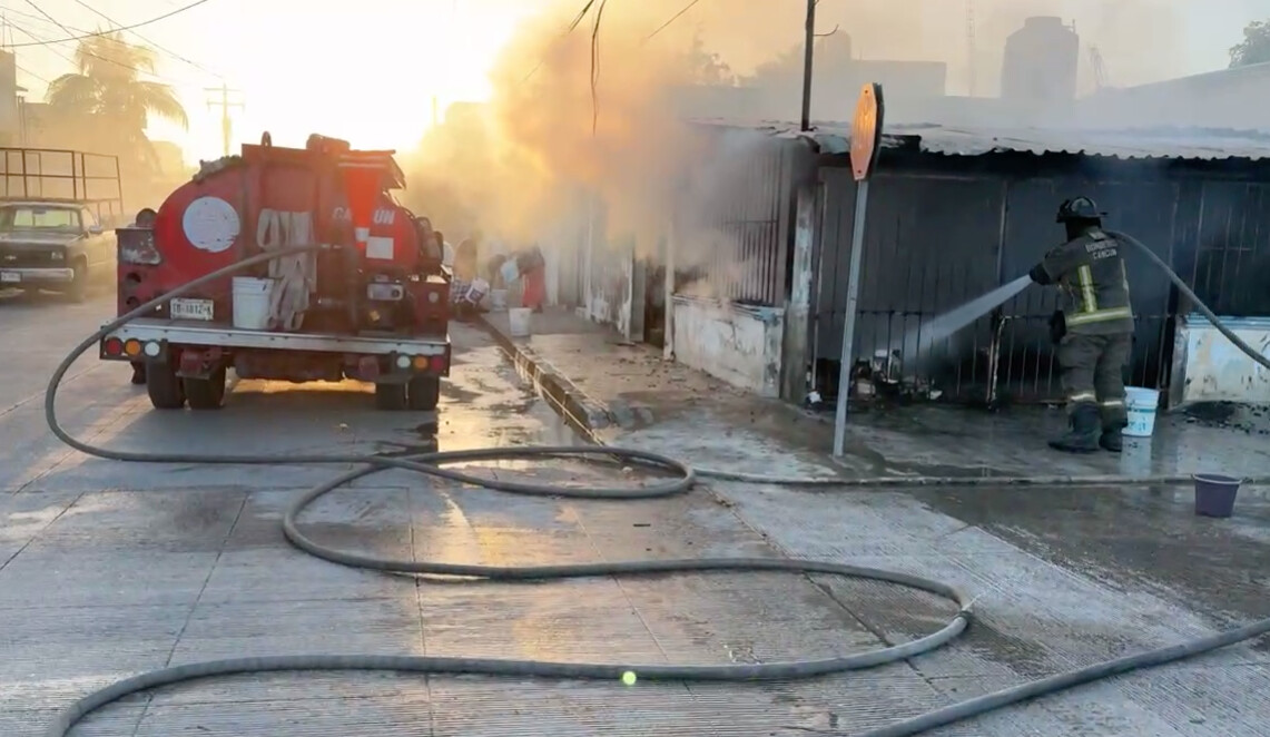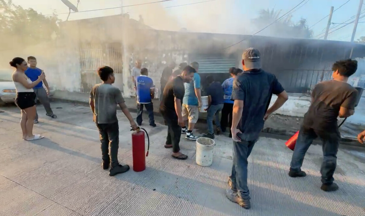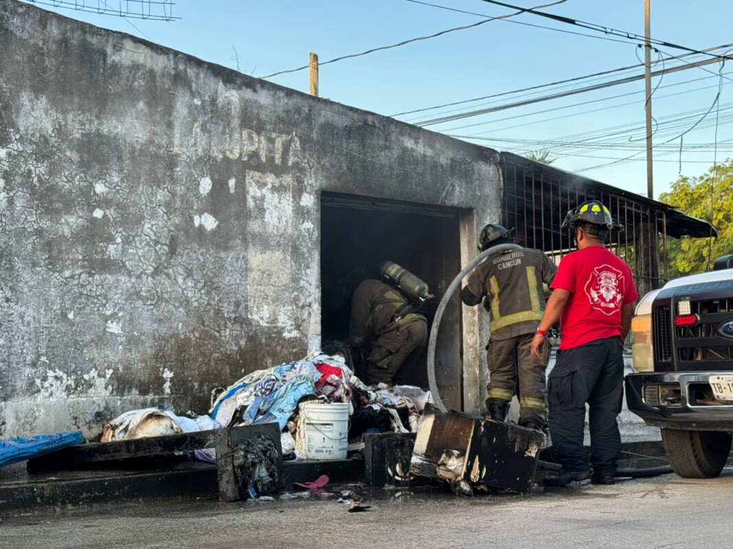 Un incendio consumió el interior de una bodega en la Supermanzana 228 de Cancún. La rápida intervención de los vecinos evitó que el fuego se propagara.