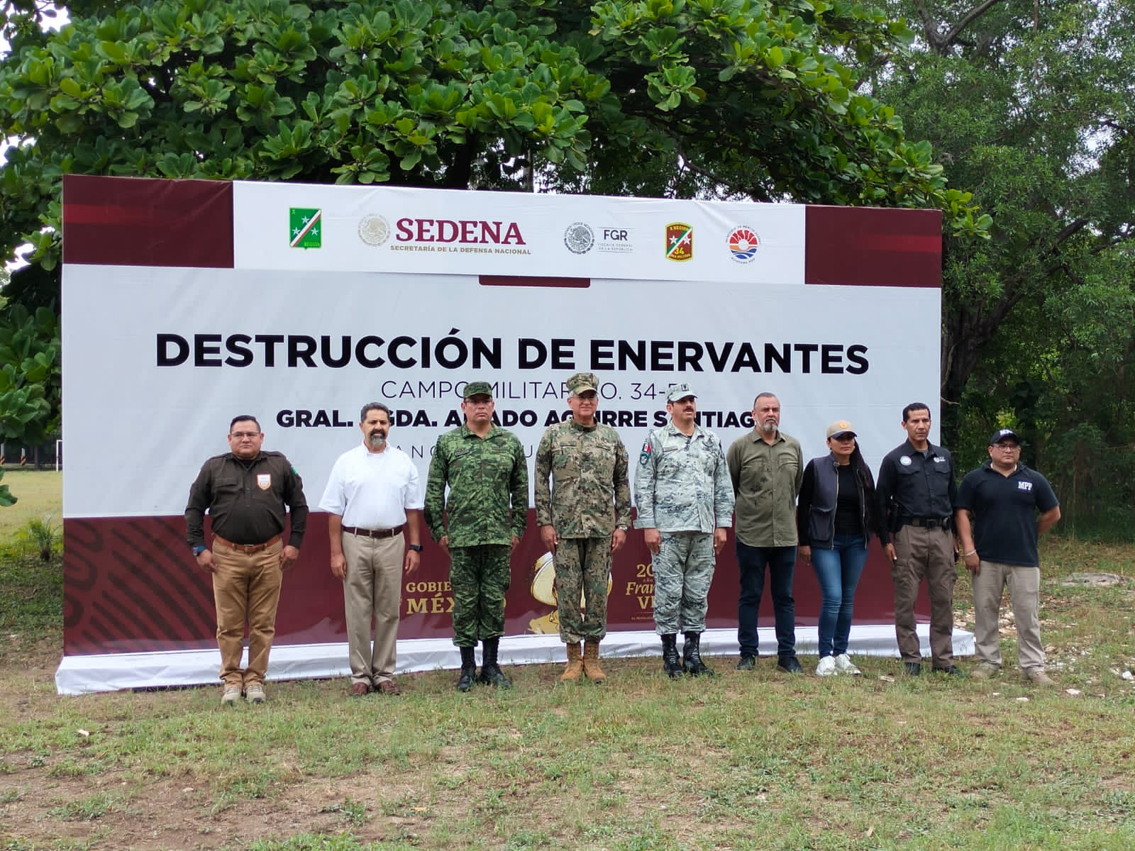 El personal militar llevó a cabo la destrucción de enervantes y psicotrópicos, por el método de incineración de 186.3 kilogramos aproximadamente de clorhidrato de cocaína y 36.9 kilogramos aproximadamente de cocaína.