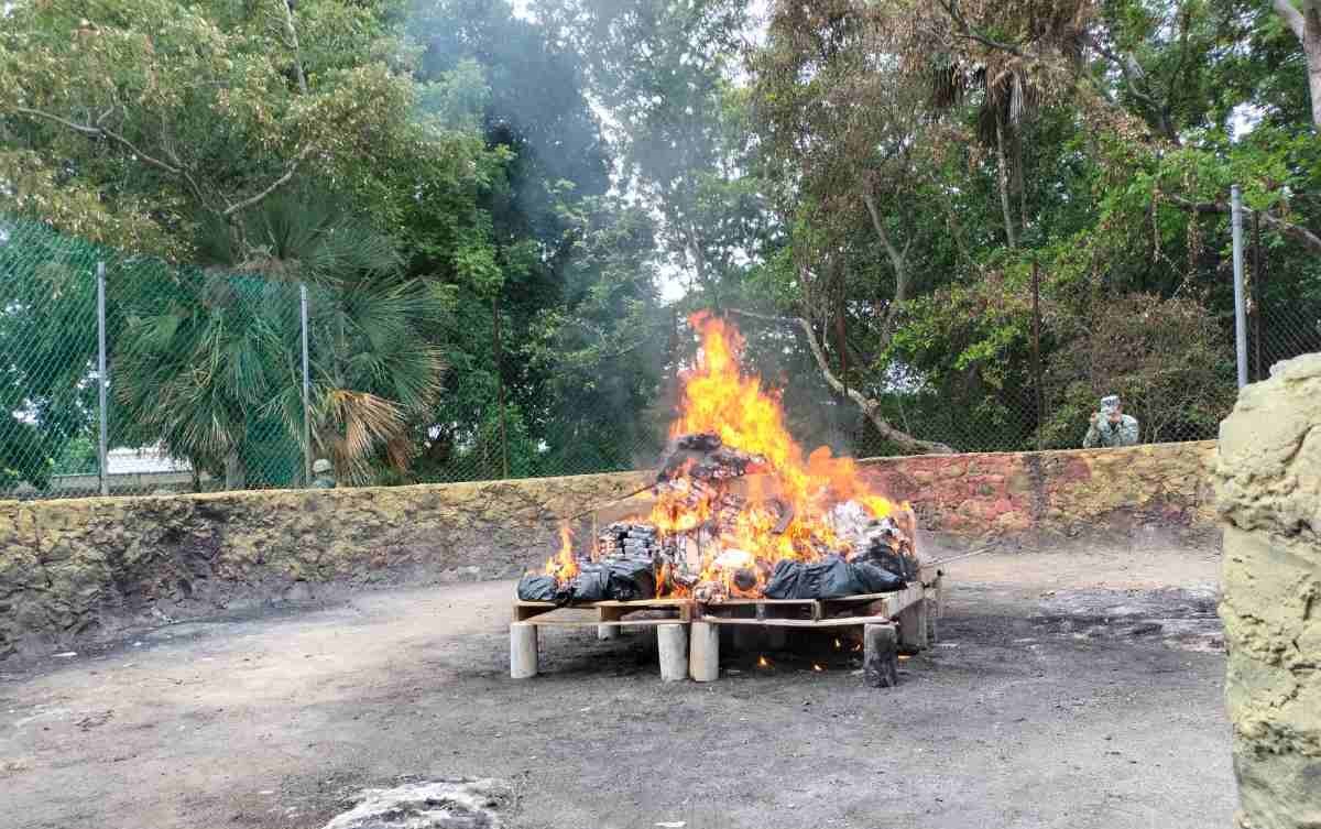 Personal del Ejército Mexicano y Guardia Nacional, en coordinación con la FGR, llevaron a cabo la incineración de más de 228 kilogramos de droga en Cancún.