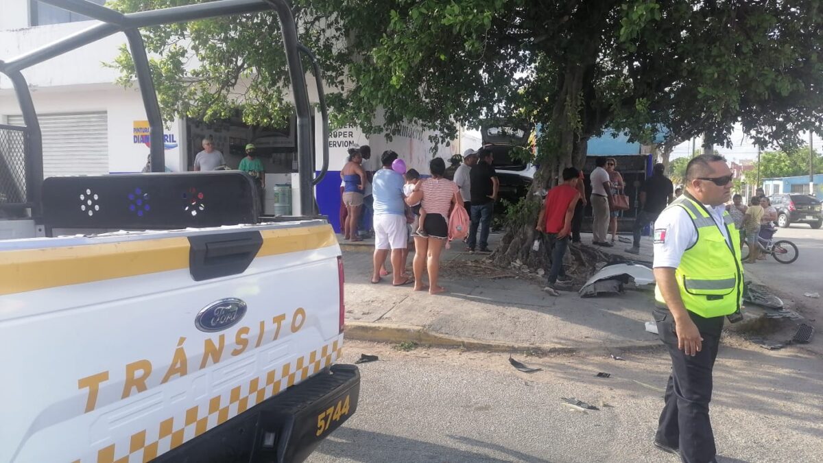 La falta de pericia para manejar, provocó que una inexperta conductora impactara su vehículo contra la pared de un lote baldío en la super manzana (SM) 229, causándose a sí misma graves lesiones y arrollando también en su torpe maniobra a un desprevenido peatón.