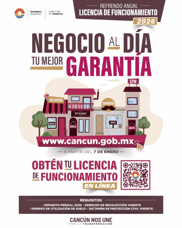 La dependencia invita a la ciudadanía en general a que obtenga su licencia de funcionamiento en línea, accediendo a través de la página oficial: www.cancun.gob.mx, para que le den el seguimiento a su gestión.
