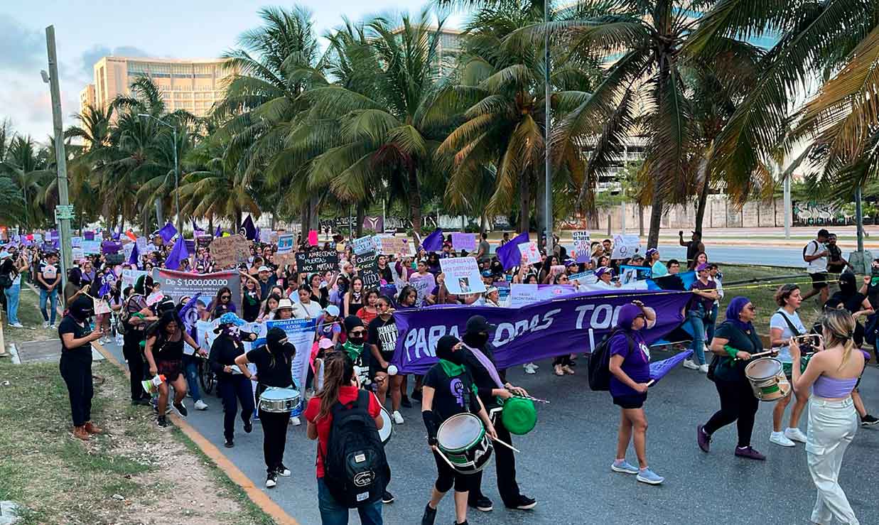 Las mujeres iniciaron su marcha desde el punto de origen, para avanzar sobre parte de la avenida Bonampak, en donde pretenden retornar luego a pocos metros de la avenida Sayil y continuar luego hacia la Nichupté incorporándose luego a la avenida Tulum en dirección al Palacio Municipal.