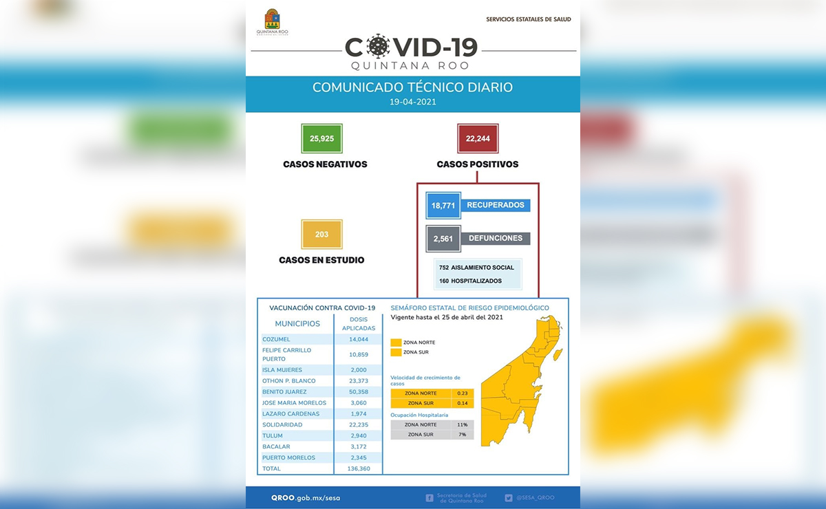 Te Puede Interesar: Mantiene Quintana Roo contagios de covid-19 a la alza
