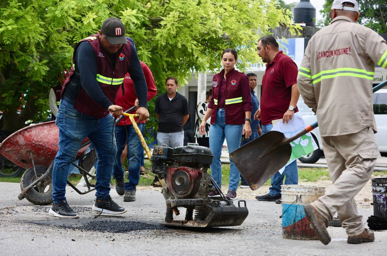 Acompañada por el director de Bacheo y Pipas, Ricardo Hernández Montiel, la Presidenta Municipal supervisó las labores realizadas en la calle Opichen con Av. Industrial en la Supermanzana 97; así como en la Supermanzana 95 en la Av. Industrial con Av. Andrés Quintana Roo y en la Av. Nichupté enfrente del Instituto Nacional Electoral (INE), así como a la altura de La Gran Plaza.