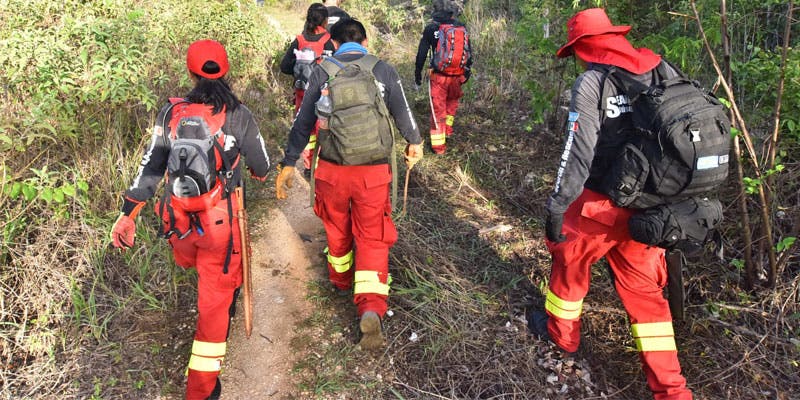 Policías Ministeriales, Fiscal del Ministerio Público, en coordinación con elementos de Protección Civil, bomberos, ciclistas y motociclistas realizaron recorridos en la zona donde las dos personas no localizadas, suelen practicar el senderismo, de acuerdo a la información proporcionada por amigos y familiares.