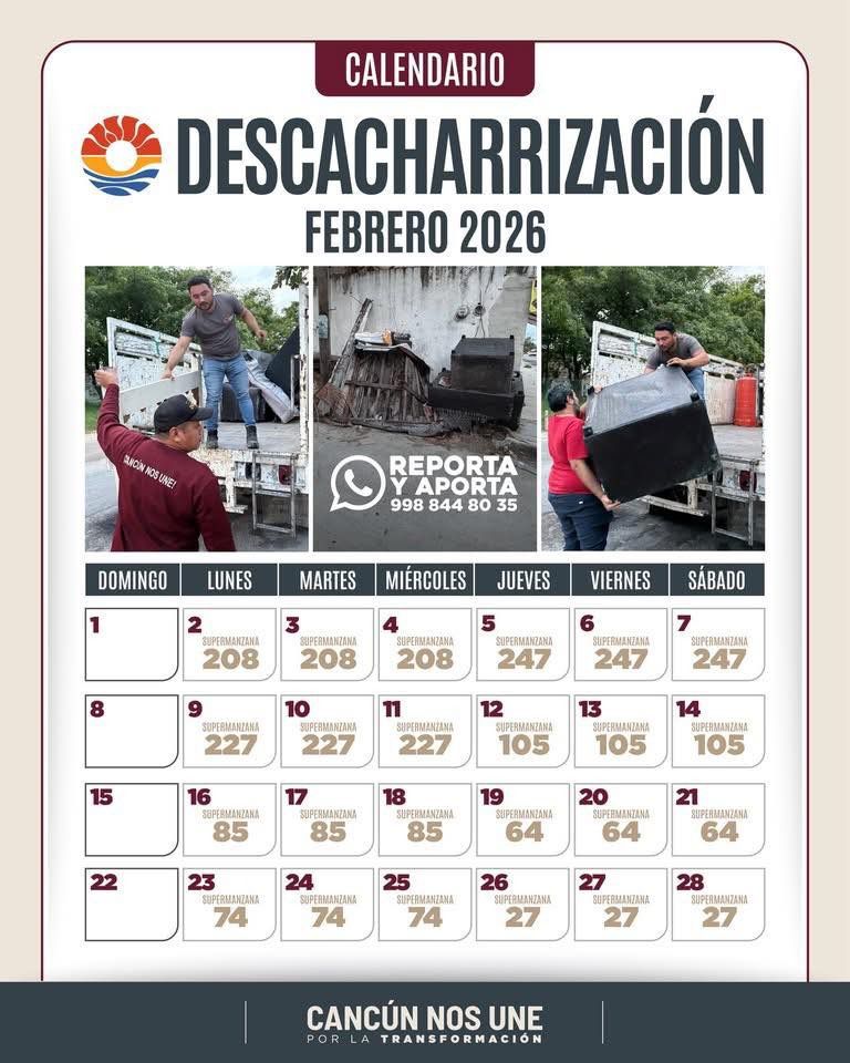 Durante los últimos días de febrero se llevará a cabo de la siguiente manera: el sábado 21 en la Supermanzana 64; mientras que el lunes 23, martes 24 y miércoles 25 en la supermanzana 74, finalizando el jueves 26, viernes 27 y sábado 28 en la Supermanzana 27.