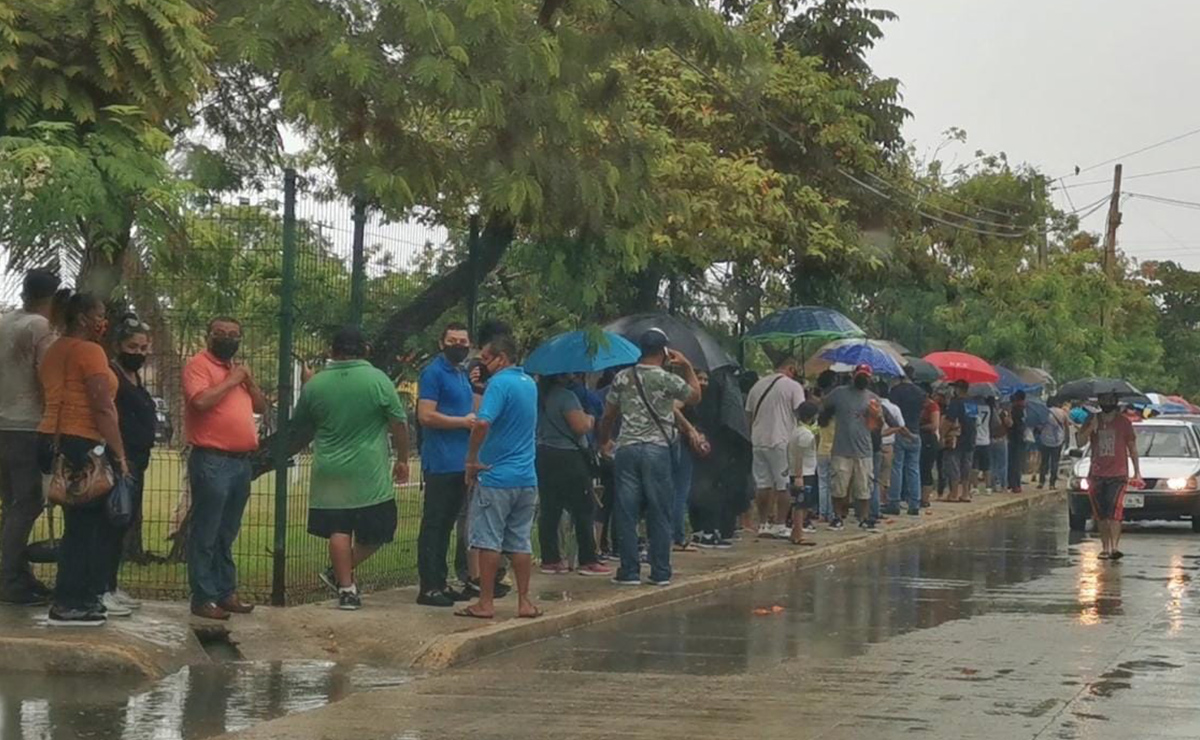 Jornada de vacunación covid-19 en Cancún, «pasada por agua», sin imaginar que la lluvia los sorprendería, este miércoles 02 de junio, inició la jornada de aplicación de vacunas anticovid 19, de la farmacéutica AstraZeneca a personas en el rango de edad de 40 a 49 años en Cancún.