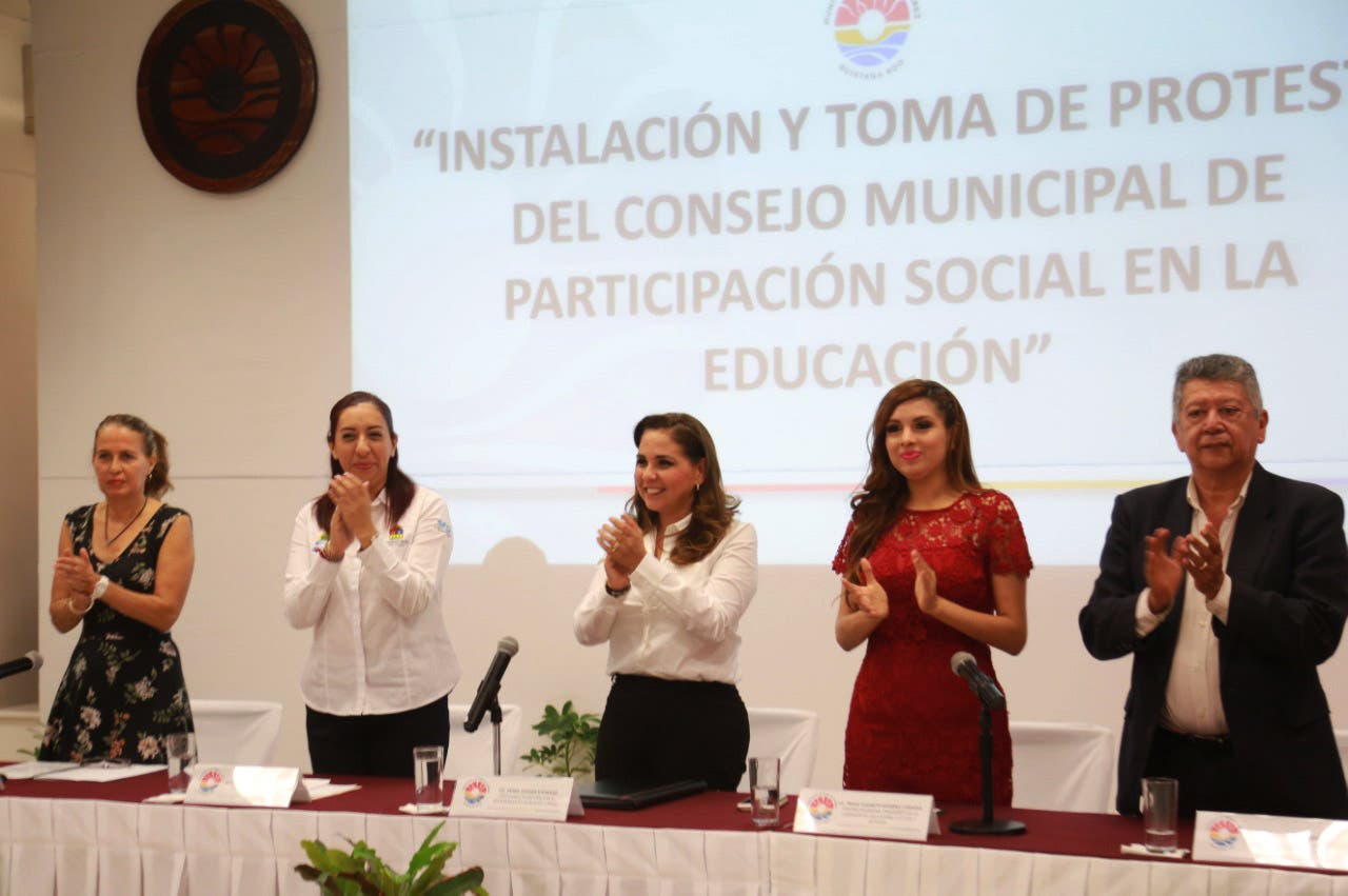 El día de hoy la Presidente Mara Lezama, instaló e hizo toma de protesta del Consejo Municipal de Participación Social en la Educación, enfatizando que la meta debe ser que todos los niños y los jóvenes tengan un lugar asegurado en la escuela, recibiendo una educación de calidad, con planteles dignos.