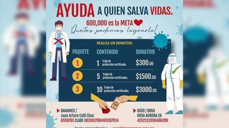 La empresaria Cayetana de Regil informó que Quintana Roo requiere cuatro mil 400 trajes especiales, como caretas y respiradores, de los cuales buscan aportar mil 775 y evitar que se contagien de la enfermedad, lo cual salvará también a sus familiares.