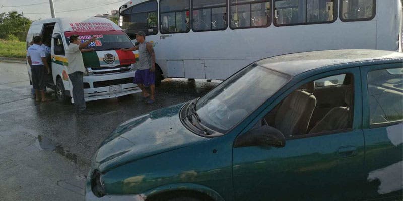 Los afectados narraron que fue el chofer de la Urvan el que no respetó la salida del fraccionamiento Villas Otoch y ocasionó la colisión de los tres vehículos.