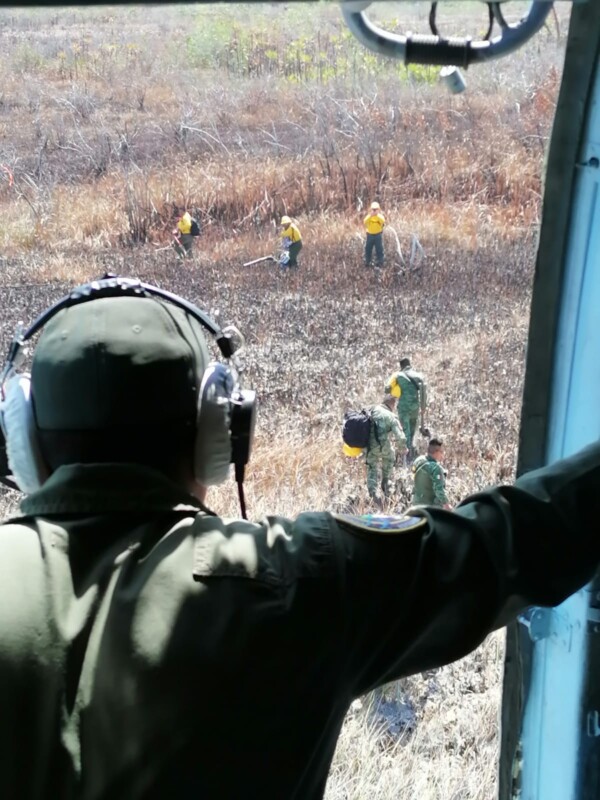 Asimismo, se cuenta con el apoyo de un helicóptero tipo MI-17, matrícula 1716 de la Sedena para traslado de personal y descargas de agua.