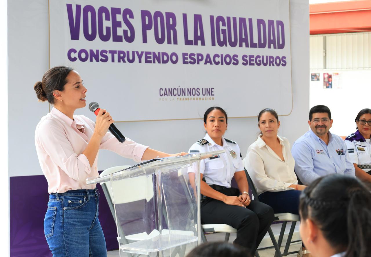 Cancún, Q. R., a 26 de enero de 2026.- Para continuar fomentando la participación de las mujeres y avanzar hacia una ciudad equitativa y libre de violencia, la presidenta municipal, Ana Paty Peralta, llevó a la Escuela Secundaria General No. 30 “Juan de la Barrera”, el foro “Voces por la Igualdad, Construyendo Espacios Seguros”, con el que se instruyó y atendió a más de 150 alumnas.