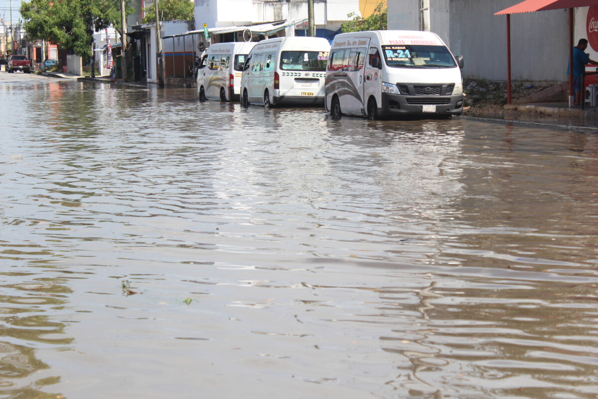 El fuerte torrencial que se dejó caer esta tarde sobre la ciudad de Cancún, de nueva cuenta provocó severas inundaciones en varias colonias, en algunas el servicio de transporte público se vio interrumpido por la lluvia
