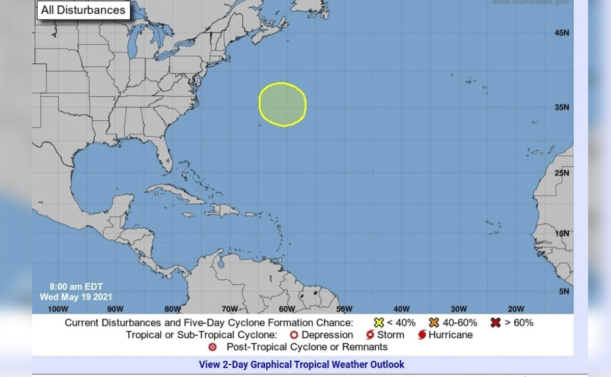 Sin embargo, este sistema meteorológico tiene una probabilidad baja, del 10 al 30 por ciento, de formación en los próximos cinco días. De evolucionar a tormenta tropical o subtropical, se llamará Ana.