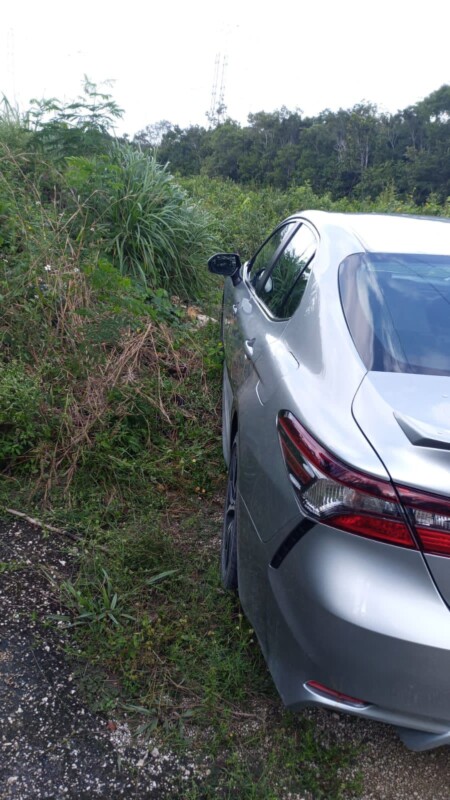 Cancún.- Una llamada anónima al 911 alertó a las autoridades policiales, ya que en la calle Manantial con avenida Huayacán, una auto de reciente modelo estaba abandonado.
