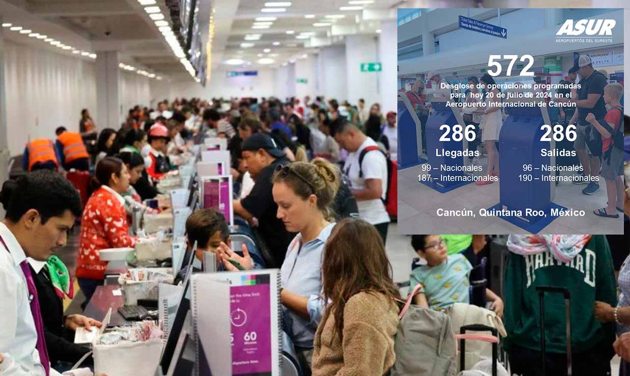 Tras volver a la normalidad luego de la jornada caótica registrada ayer por el apagón informático de Microsoft, el Aeropuerto Internacional de Cancún (AIC) logró registrar un total de 572 vuelos tanto nacionales como internacionales este sábado 20 de julio.