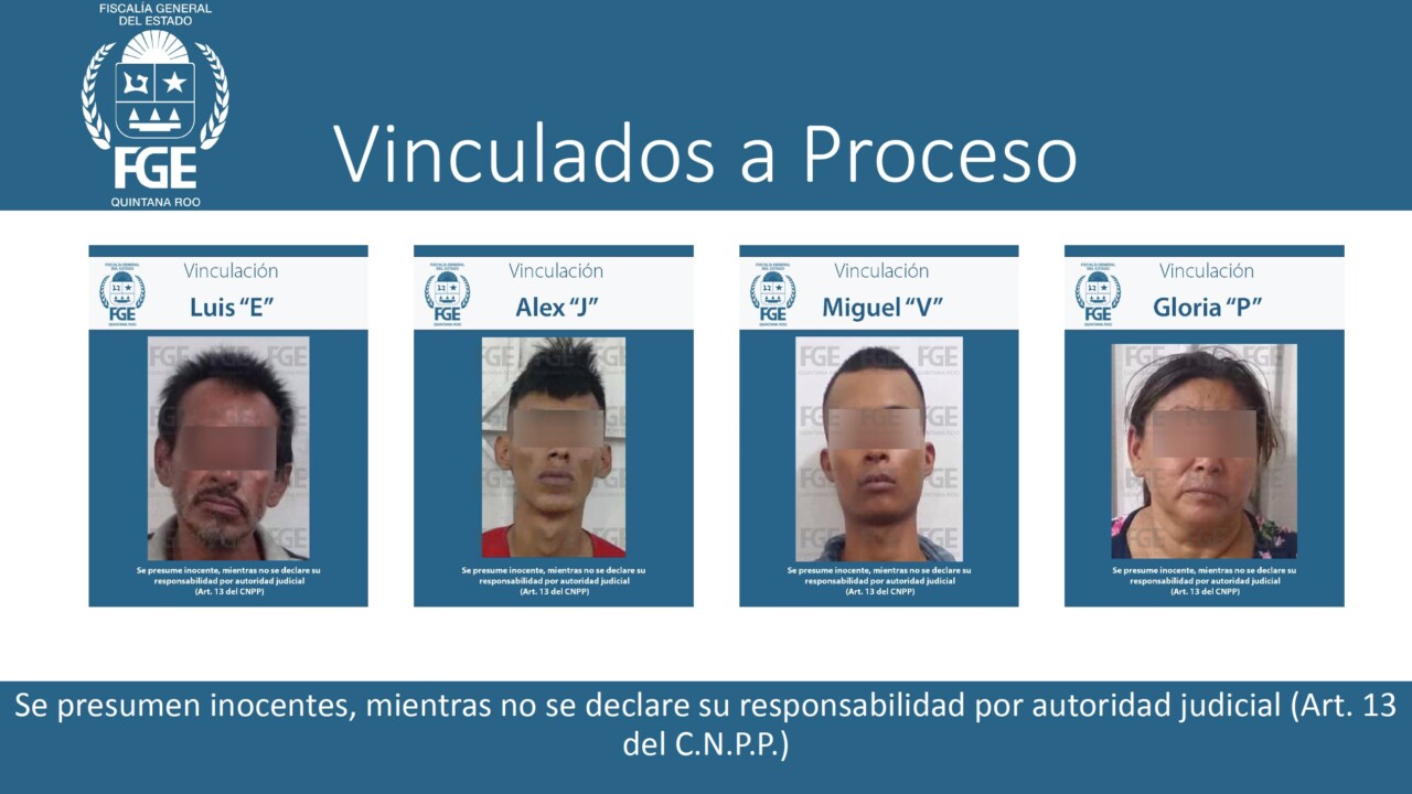 Los ahora vinculados son Luis “E”, Alex “J”, Miguel “V”, Gloria “P”, Marilyn “P”, Eder “G”, Aracely “M”, Guadalupe “G”, Juan “G”, Ángel “G”, Lorena “F”, Shanik “C”, Gilberto “J” y Juan “C” alias “Apá”, quien es líder de una banda delictiva generadora de violencia en Benito Juárez.