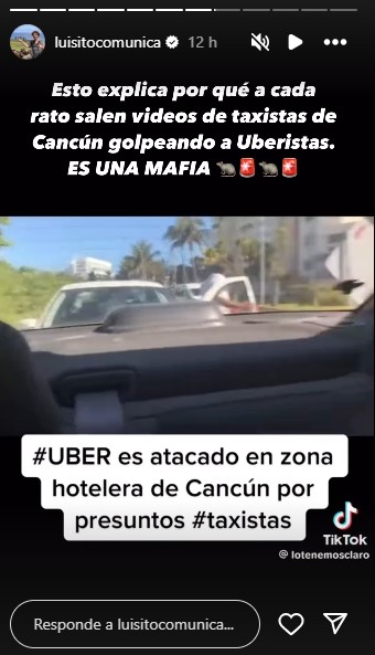 Asimismo, decidió subir un video de taxistas atacando a conductores de Uber, por lo que mostró a todos sus seguidores los problemas con los taxistas que existen en Cancún. Cabe mencionar que incluso dijo que le llegaron a pedir propina por el conductor y es que mostró la compañía que lo estafó.