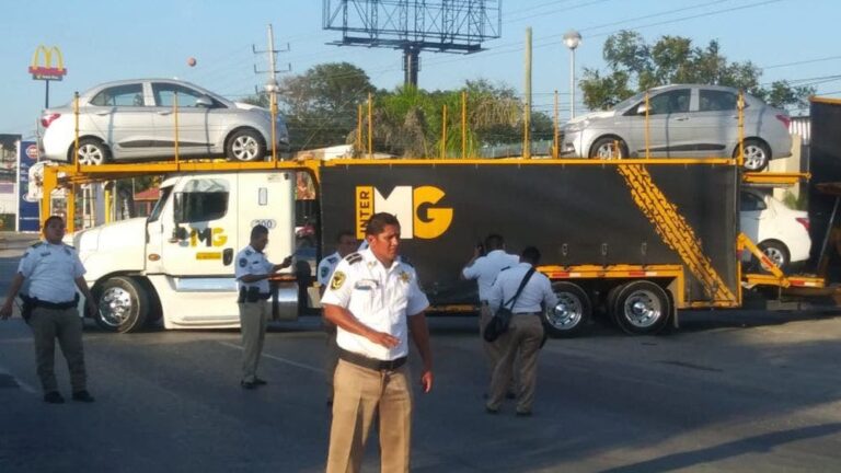 «Madrina» se atora en bulevar Colosio y causa caos vial.- Un trailer que transporta varios carros nuevos se quedó atorado alrededor de las seis de la tarde en la entrada del autodromo ubicado en el bulevar Luis Donaldo Colosio
