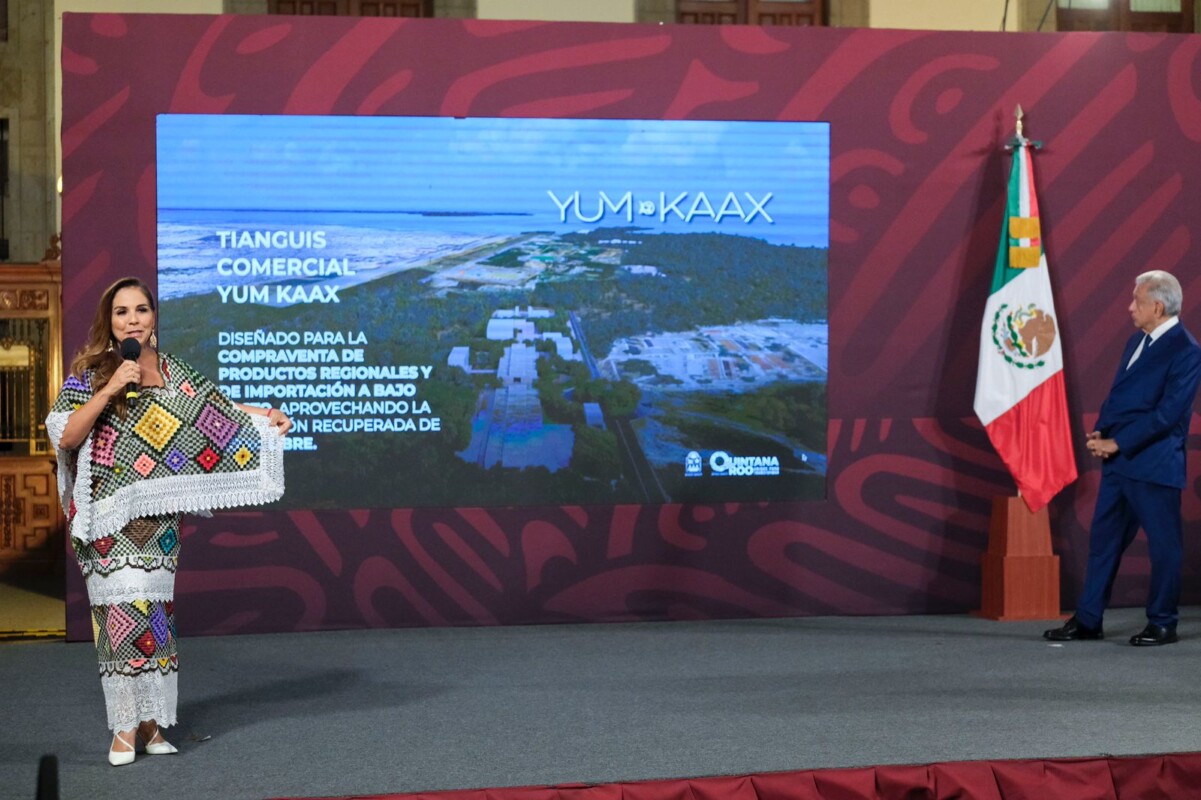 Ciudad de México. Durante la presentación de los avances de la construcción del Tren Maya en la conferencia matutina del presidente Andrés Manuel López Obrador, la gobernadora Mara Lezama anunció la creación del “Tianguis Comercial Yum Kaax”, un proyecto diseñado para la compra venta de productos regionales y de importación a bajo costo, con lo que se aprovechará la condición de Zona Libre de Chetumal, pero además le regresará el protagonismo a esta zona del Caribe mexicano.