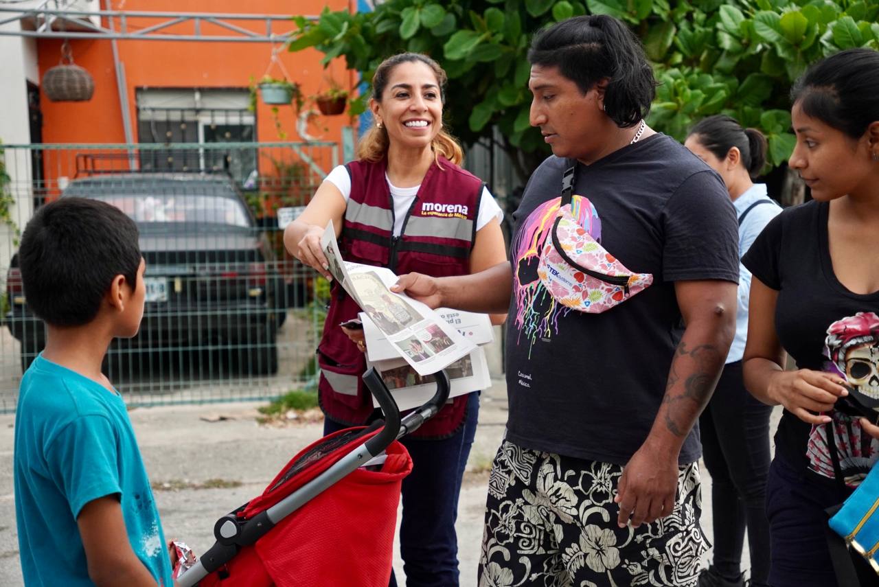 La senadora de Morena por Quintana Roo, Marybel Villegas Canché cumplió un compromiso con los vecinos de Azul Bonampak con la limpieza de un área verde y, además, visitó a los tianguistas del fraccionamiento Vista Real.