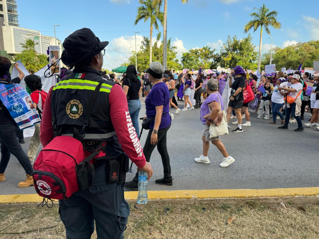 Una de las paradas clave anunciadas será sobre la avenida Tulum, donde las manifestantes continuaron su marcha hasta llegar a la famosa glorieta de “El Ceviche”.
