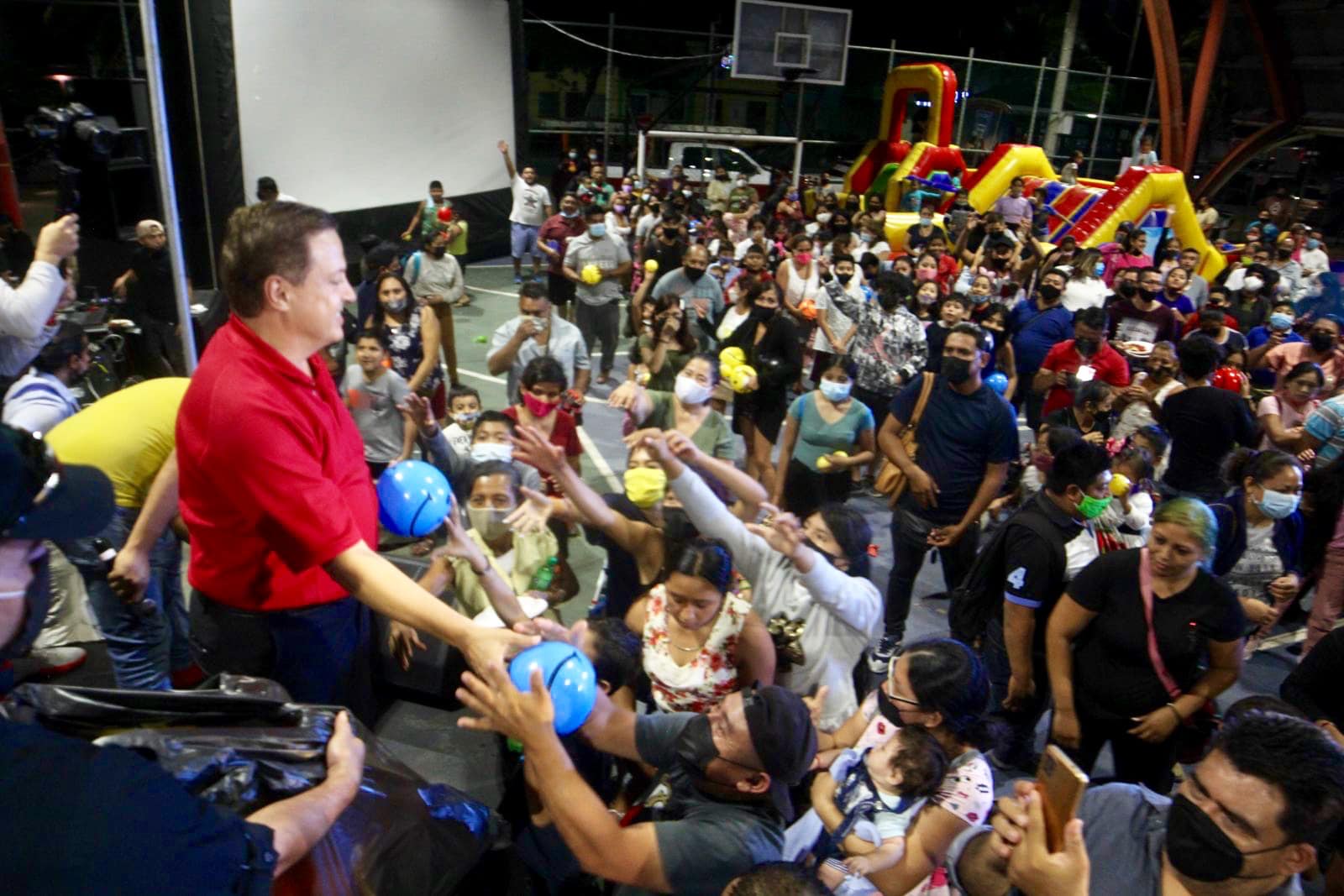 En punto de la 5 de la tarde del martes, la gente fue arribando al Domo Deportivo de la Supermanzana 247, ubicado en la avenida Tules de Villas Otoch, en donde se acataron todas las medida sanitarias, así como se entregó a los asistentes un boleto para la rifa de muchos regalos.