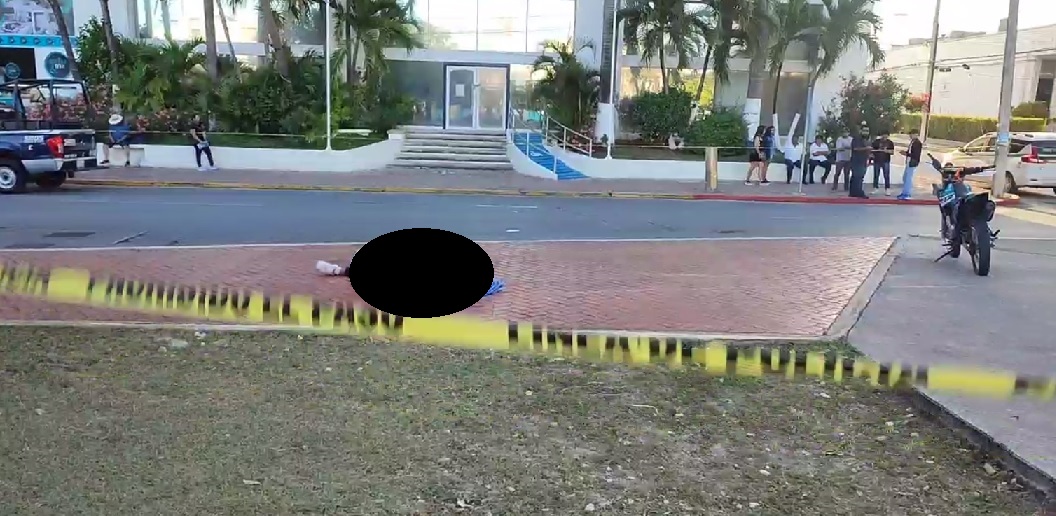 El cuerpo permaneció tirado sobre la banqueta frente al hotel Oasis Smart por varias horas, hasta que las autoridades de la Fiscalía General del Estado acudieron para levantarlo y trasladarlos al Semefo.