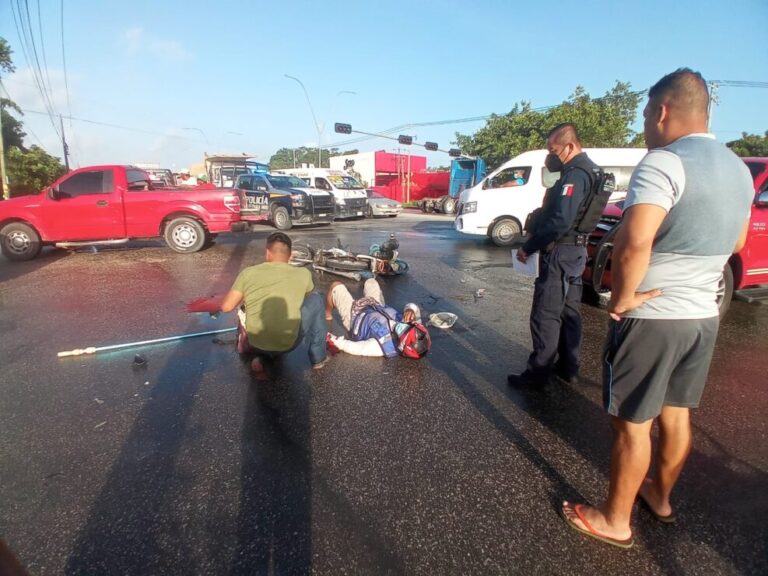 Los hechos se registraron aproximadamente a las 8:15 horas de este viernes entre una motocicleta Marca Honda, color blanco, placas VFN5M de Quintana Roo y que era tripulada por Jesús Abelardo C.M., de 29 años; y una camioneta Toyota, modelo Hilux, color rojo, placas 802YEH de Quintana Roo, que era manejada por Moisés M.F., de 39 años.