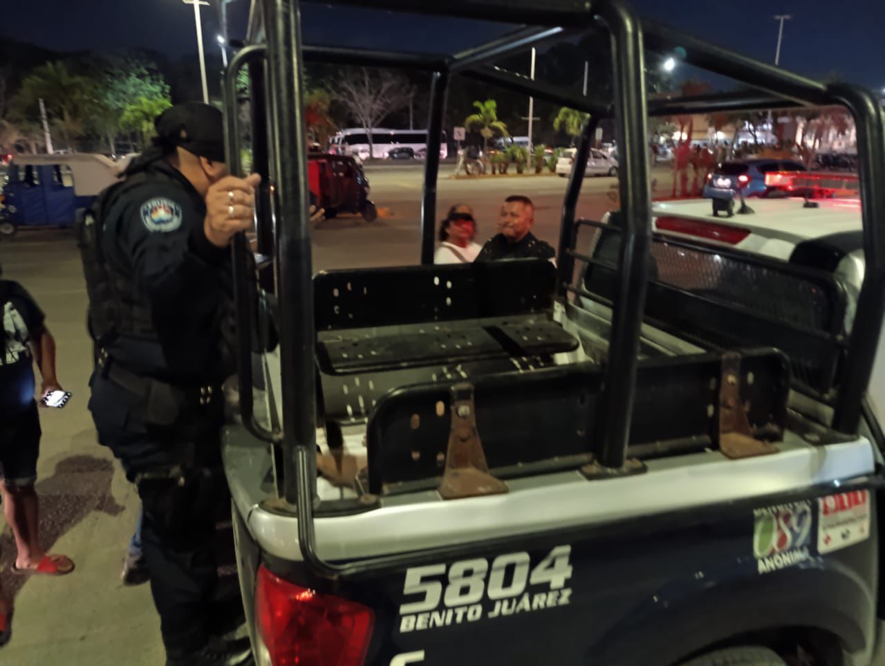 Instantes después llegó la patrulla 5804 de la Policía Municipal de Cancún, cuyos elementos se encargaron de trasladar al sospechoso para ponerlo a disposición de las autoridades pertinentes.