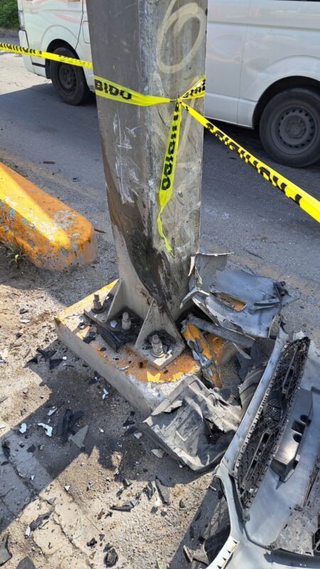 El accidente sobrevino de sur a norte en el bulevar Luis Donaldo Colosio, cuando el taxista, al no tomar en cuenta las condiciones de la vía y del vehículo, perdió el control de su dirección hacia su lado derecho chocando con un poste metálico.