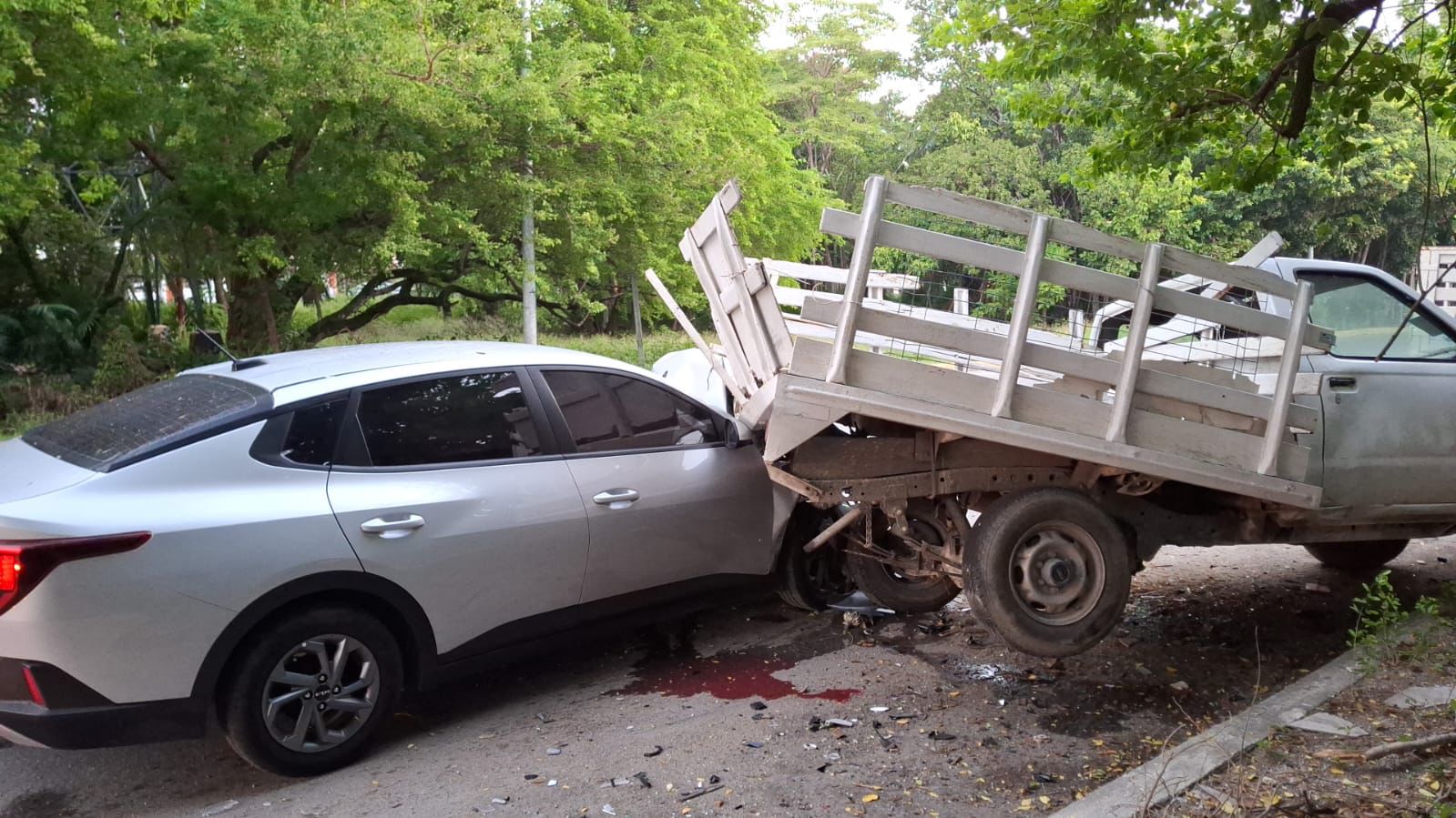Una mujer, al parecer bajo los influjos del alcohol, impactó su vehículo contra una camioneta estacionada en la avenida Cancún, en la Supermanzana 525.