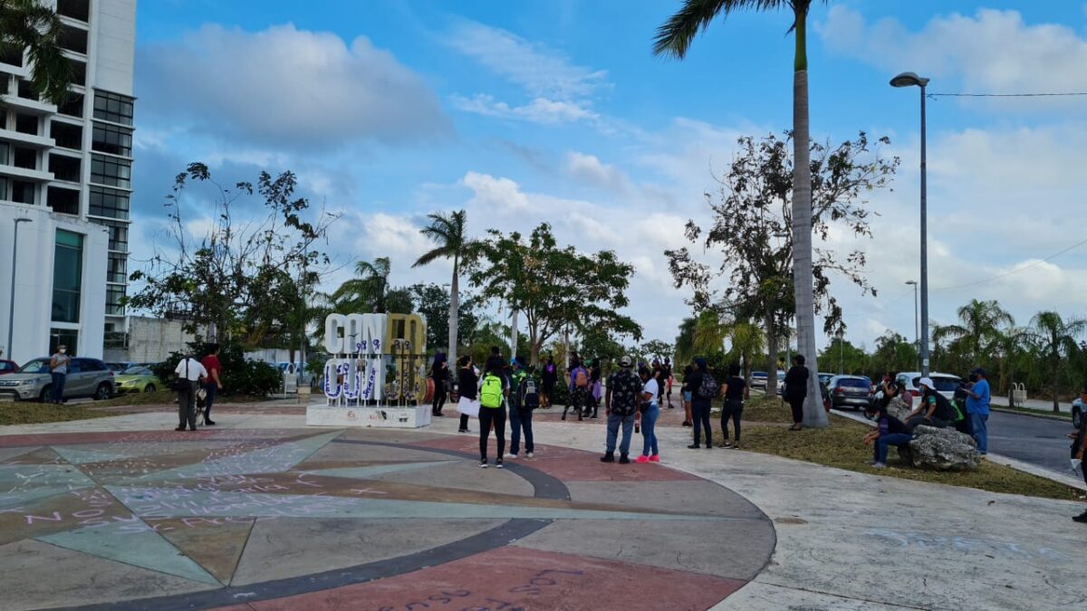 En estos momentos marchan en dirección a la explanada de la Plaza de la Reforma, en donde fue la protesta que elementos de la Policía Quintana Roo disolvieron a balazos lesionando a dos comunicadores.