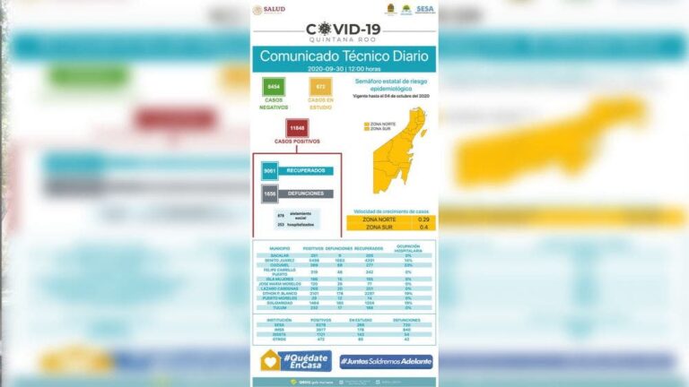 De los nuevos casos la mayoría se reportaron en Benito Juárez, con 26 positivos y 4 decesos, seguido de OPB con 12 confirmados y 2 defunciones, Solidaridad por su parte reportó 4 muertes más por esta causa, siendo los más representativos. Respecto a la ocupación hospitalaria Cozumel continúa encabezando la lista con el 33%, OPB, y Solidaridad están al 19%, en tanto que Benito Juárez al 14 y Tulum volvió a los municipios con el 0%.