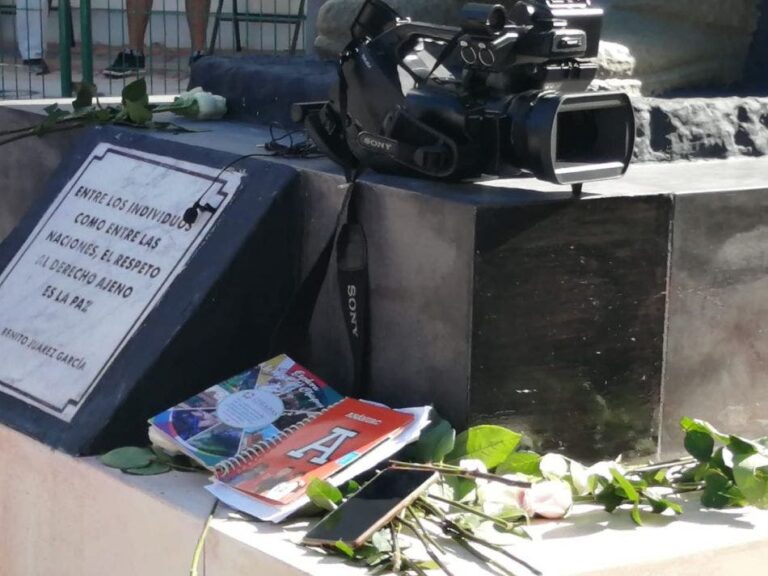 Por tal motivo reporteros, periodistas, camarógrafos, fotógrafos y personal administrativo de los medios de comunicación se reunieron para dejar en ofrenda una flor blanca por todos aquellos periodistas que han muerto por diversas causas, pero sobre todo para pedir garantías en la labor periodística.