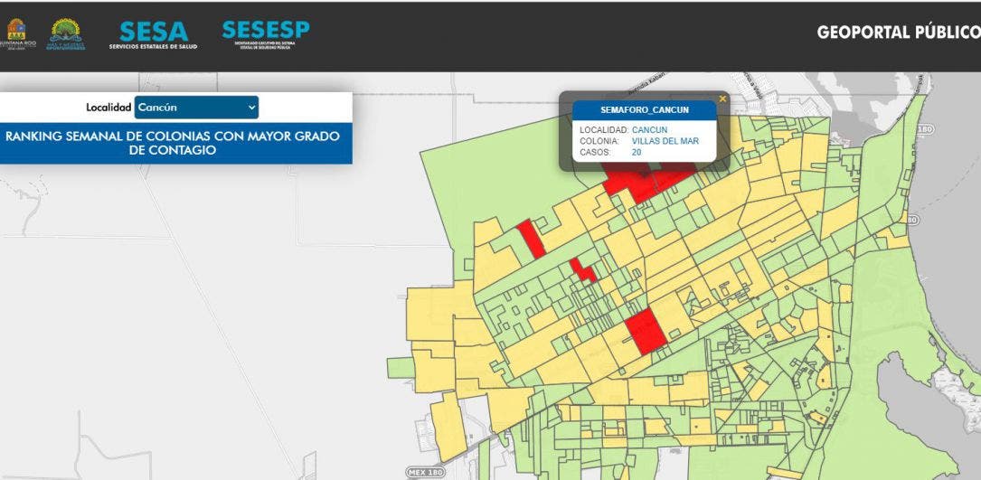 Una vez más, Villas del Mar ocupó el primer lugar en el ranking de las colonias de Cancún con mayor número de casos activos relacionados con el Covid-19; en el mismo sitio se encuentra Hacienda Real del Caribe, registrando seis en cada una, de acuerdo con la información revelada por el Gobierno de Quintana Roo.